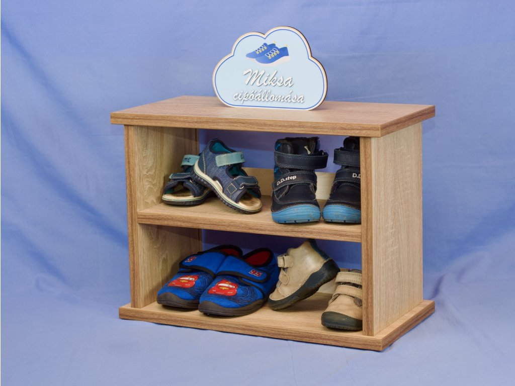 A cipőállomás több, mint egy tároló. Minden bútor egy kis felhő alakú táblával érkezik meg a gyerekekhez, melyen az Ő nevük szerepel, ezzel személyesebbé téve a bútort. A gyerekek magukénak érezhetik a bútorokat, így arra ösztönzi őket, hogy elpakoljanak maguk után és rendet tartsanak környezetükben. A felhő alakú tábla kivehető, így cipőhúzás esetén ráültethetjük gyermekünket vagy akár saját maguk is felvehetik a surranójukat. És indulhat is a játék!