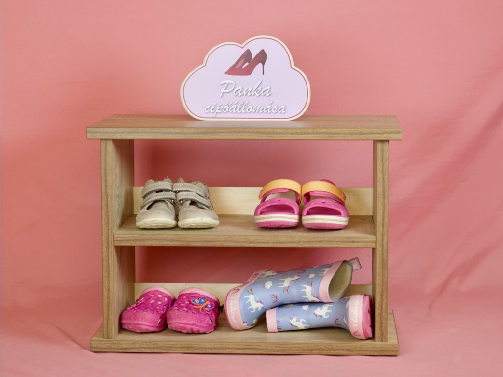 A cipőállomás több, mint egy tároló. Minden bútor egy kis felhő alakú táblával érkezik meg a gyerekekhez, melyen az Ő nevük szerepel, ezzel személyesebbé téve a bútort. A gyerekek magukénak érezhetik a bútorokat, így arra ösztönzi őket, hogy elpakoljanak maguk után és rendet tartsanak környezetükben. A felhő alakú tábla kivehető, így cipőhúzás esetén ráültethetjük gyermekünket vagy akár saját maguk is felvehetik a surranójukat. És indulhat is a játék!
