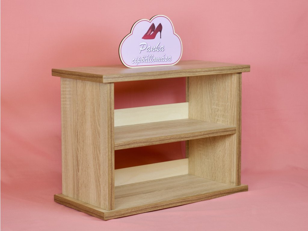 Cipőállomás sonoma tölgy színben, rózsaszín táblával